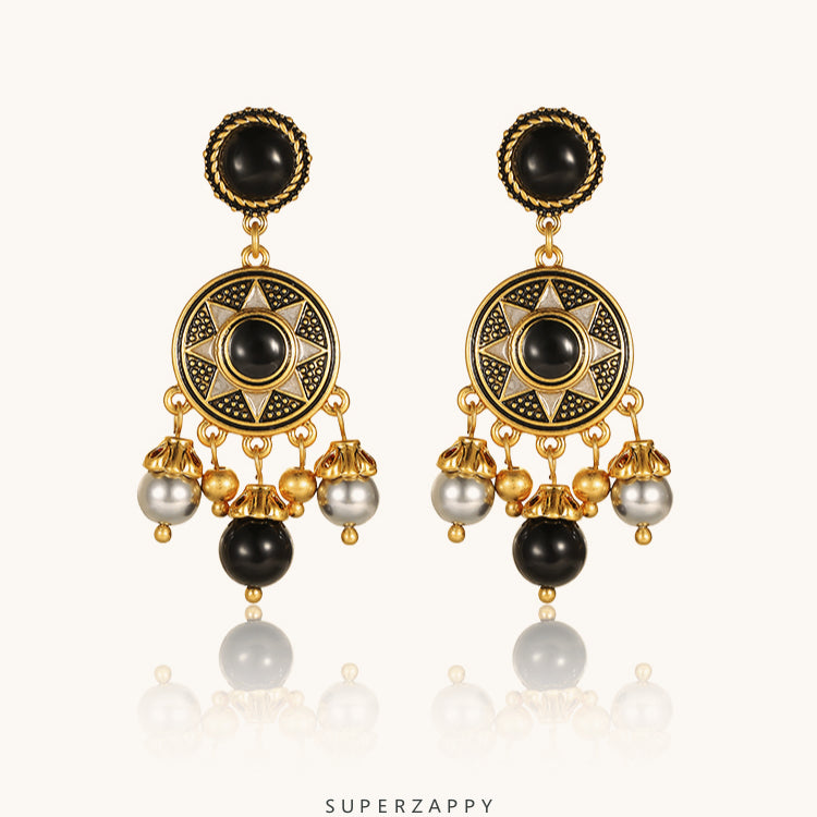 - Luxurious Materials: Made from alloy with 18K matte gold plating and 925 sterling silver posts, enhanced by striking black gemstone accents.