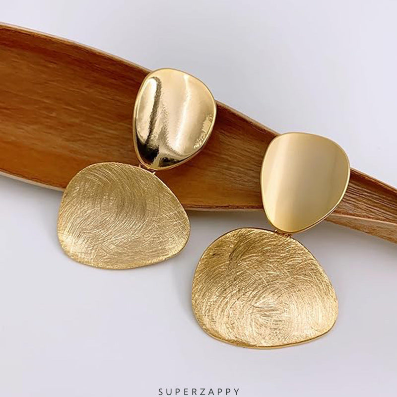 - Modern Geometric Design: These earrings feature an irregular geometric shape with a brushed finish, adding a contemporary and stylish touch to any outfit.