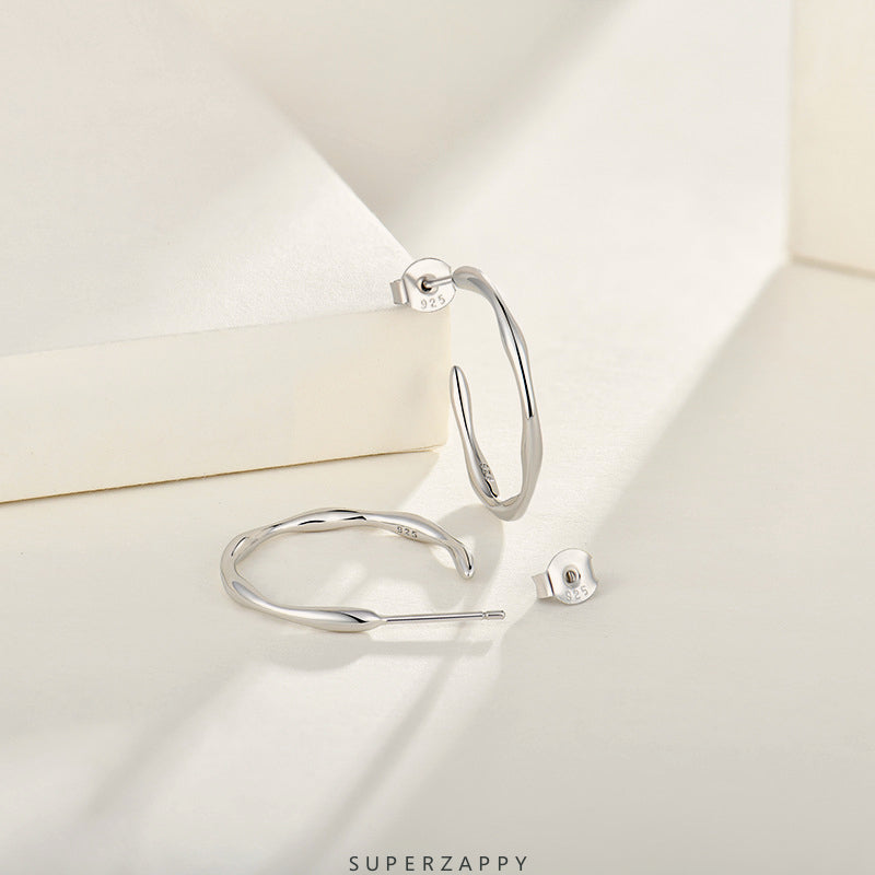 Geometric Irregular C-Shaped Earrings | S952 Sterling Silver
