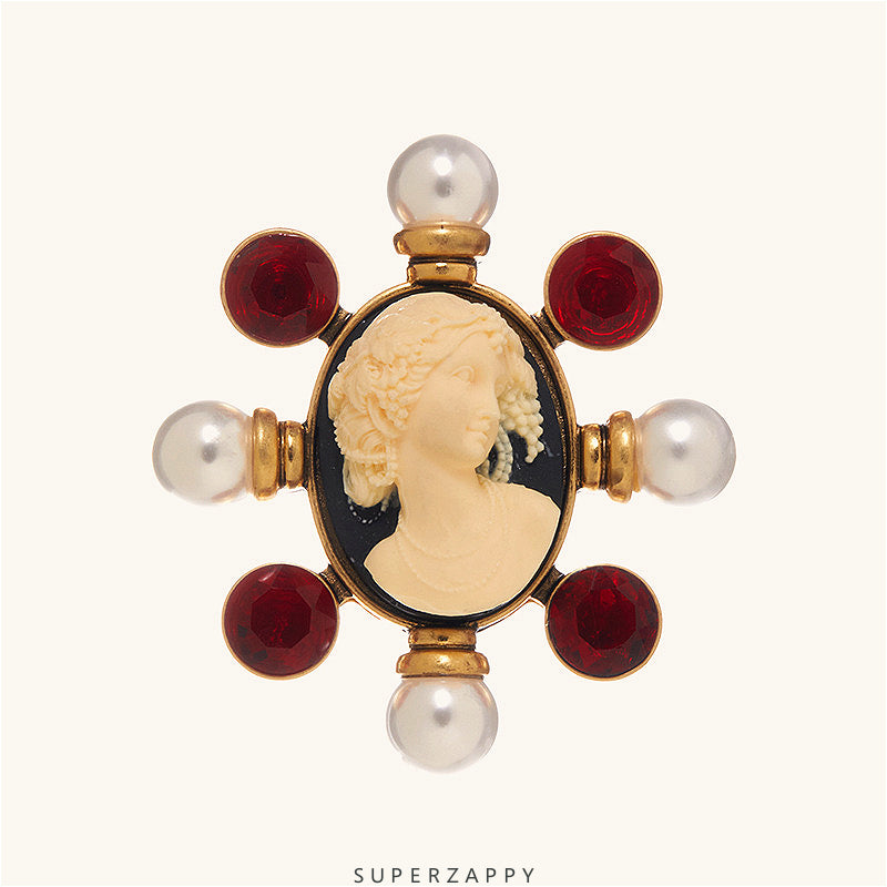 - Care Tip: To maintain the beauty of your Regal Cameo Lady Pearl Floral Brooch Pin, avoid exposure to water, perfumes, and harsh chemicals. Store it in a soft pouch or jewelry box to protect the matte gold finish, delicate glass beads, and faux pearls. Clean gently with a soft, dry cloth to preserve its luster and intricate details.