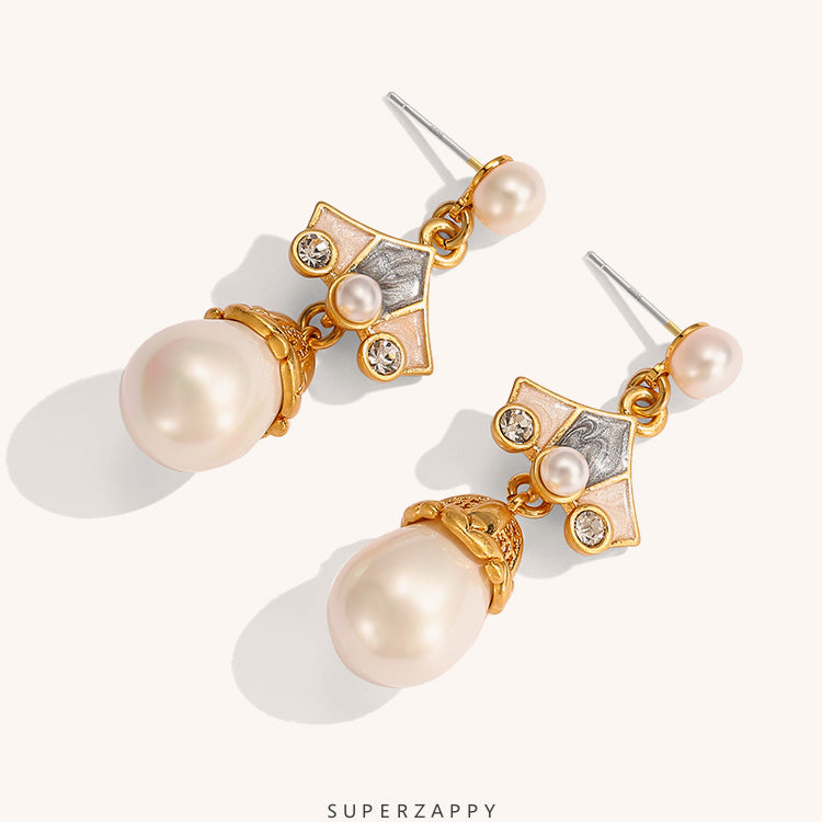 Silk Road Earrings - Vintage Enamel & Pearl Baroque